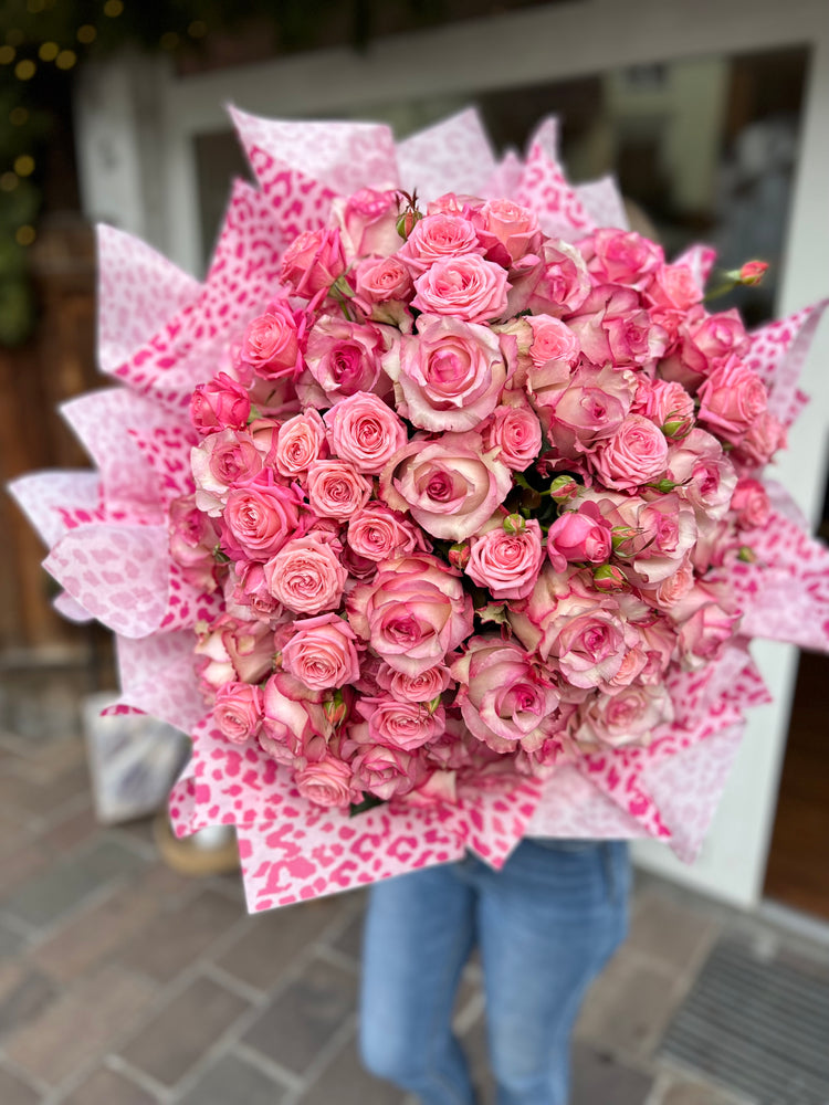 Auf dem Bild ist ein Premium Strauss mit 54 Rosen. Die Basic Strauss enthält 29 Rosen.