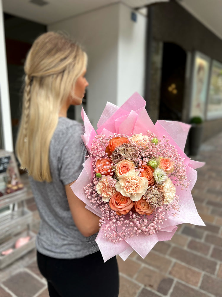 Dieser Strauß steht voller positiver Energie und bringt Licht und gute Laune in jeden Raum. Alle Blumen werden vor Ort liebevoll zusammengestellt und zu einem wunderschönen Strauss gebunden.