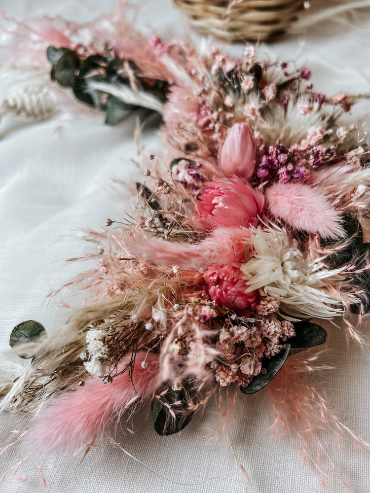 Jeder Kranz ist mit Liebe handgefertigt. Keiner wird jemals genau gleich sein wie der andere. Die Produkte aus denen Ihr Kranz besteht, hängen von der Verfügbarkeit von Blumen und Gräsern ab.