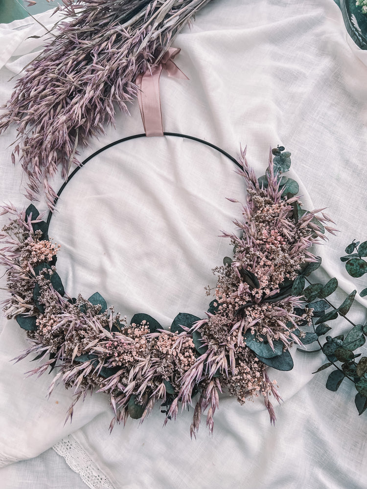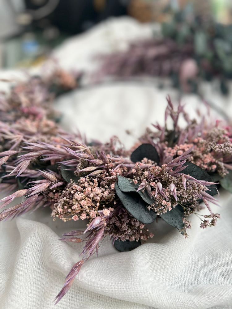 Jeder Kranz ist mit Liebe handgefertigt. Keiner wird jemals genau gleich sein wie der andere. Die Produkte aus denen Ihr Kranz besteht, hängen von der Verfügbarkeit von Blumen und Gräsern ab.
