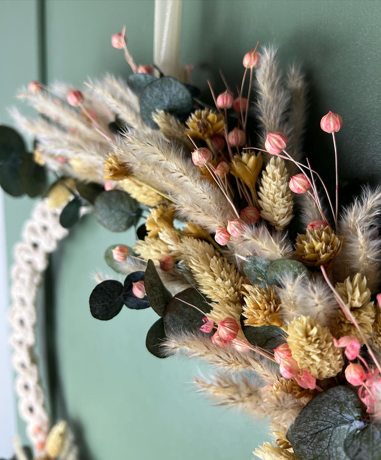 Jeder Kranz ist mit Liebe handgefertigt. Keiner wird jemals genau gleich sein wie der andere. Die Produkte aus denen Ihr Kranz besteht, hängen von der Verfügbarkeit von Blumen und Gräsern ab.